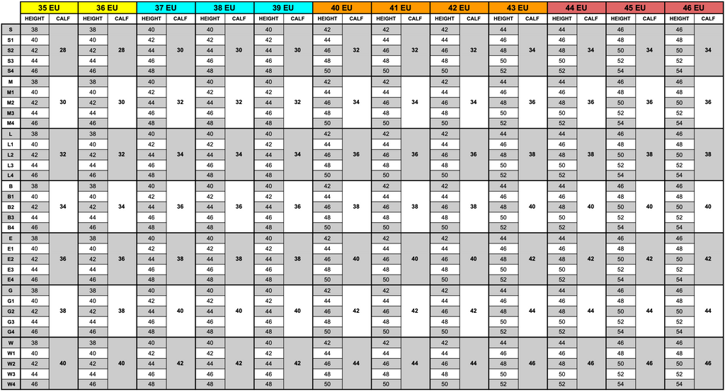 At the checkout, in the notes box, tell us your eu shoe size, calf and height and we will select the correct RTW size.