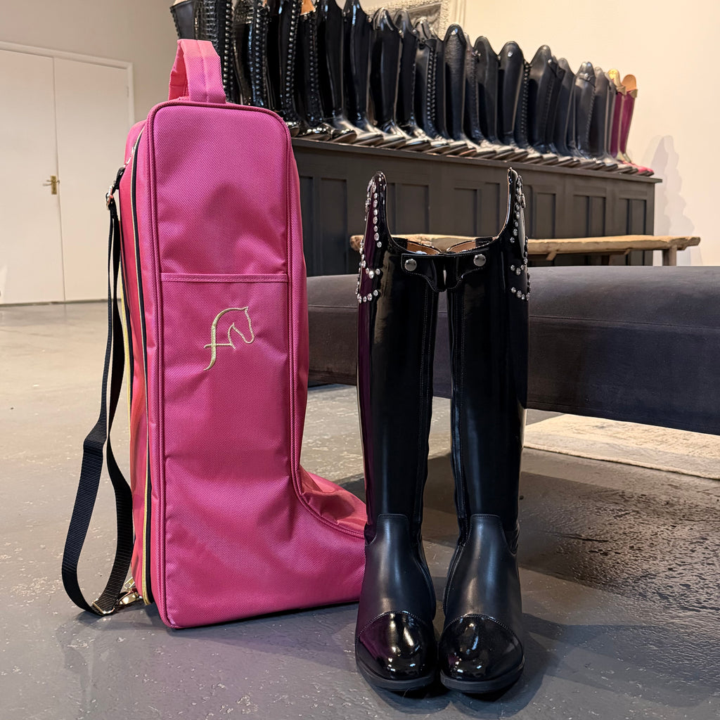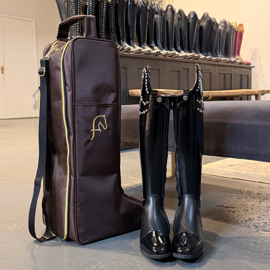 Our beautiful handmade boot bags are crafted using superior materials and luxury embroidery, designed to complement our bespoke boots perfectly.
